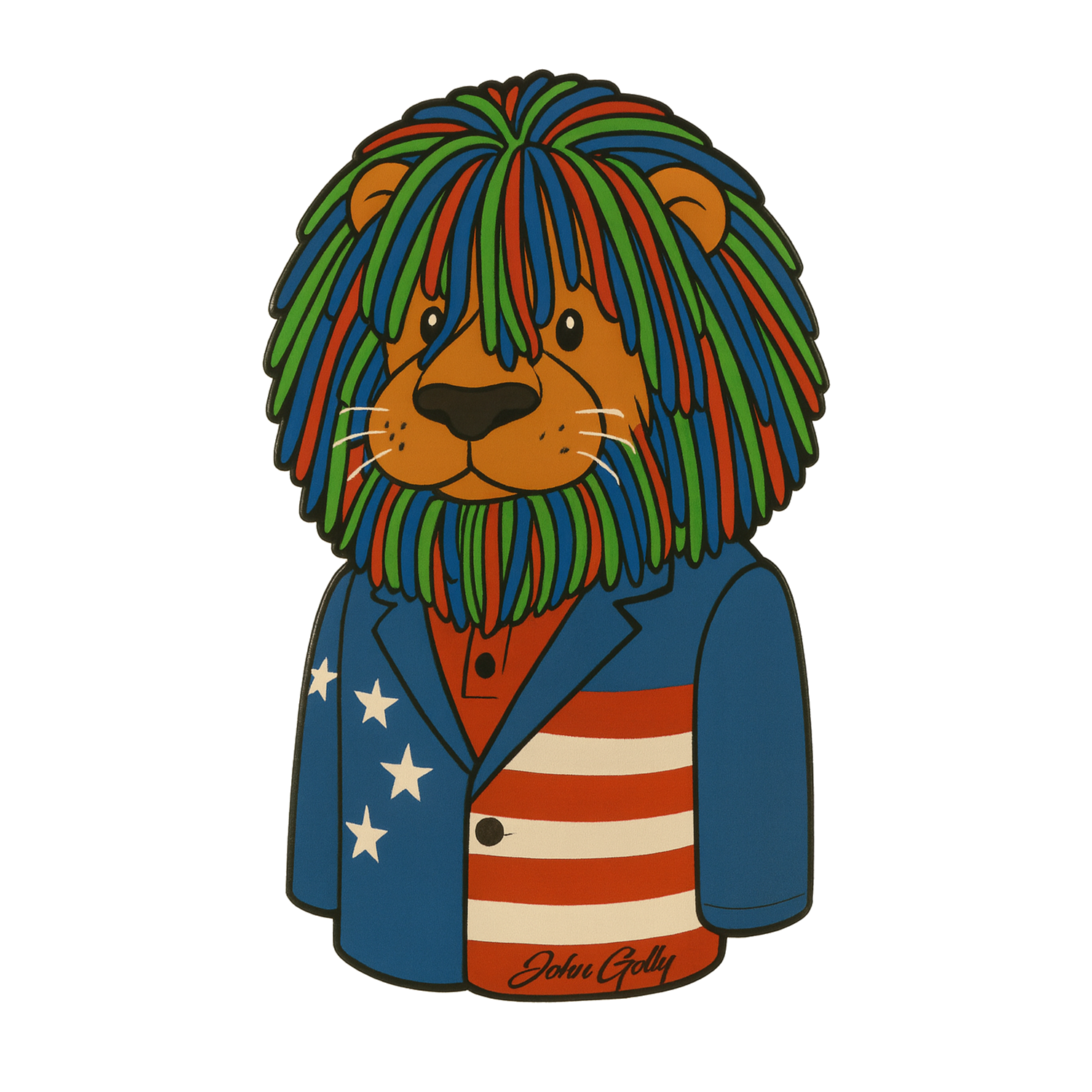 Meet John Golly — the lion with a mane full of mullet, a jacket full of freedom, and a golf game full of chaos. Inspired by the legendary John Daly’s unmistakable style (and that wild headcover we all know), this custom-shaped ball marker is pure patriotic energy wrapped in a stars-and-stripes blazer.