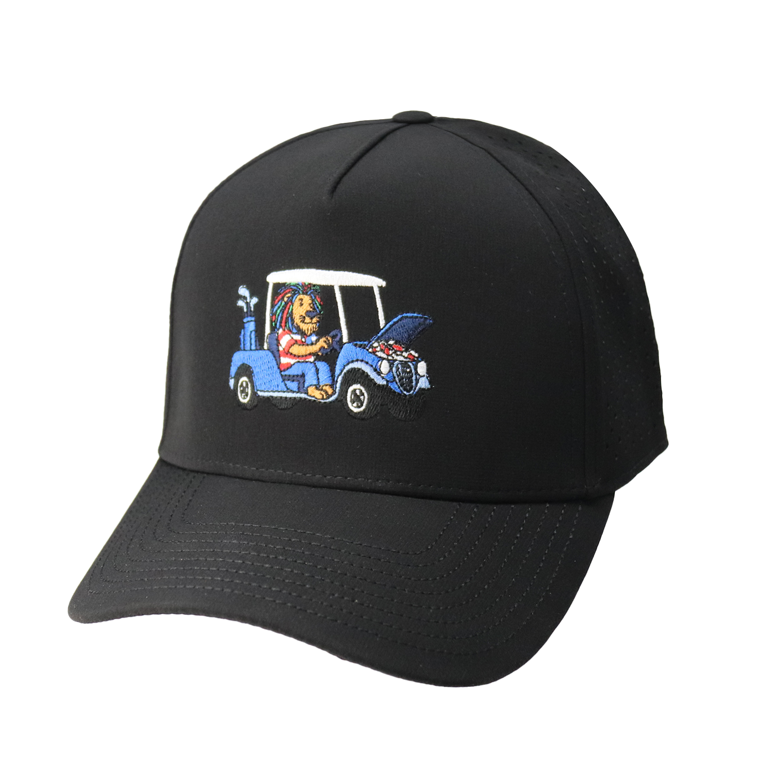 The Carting Golly Hat brings smooth swagger to your game, featuring everyone’s favorite lion, John Golly, behind the wheel. Rocking his signature red stripes and rolling in a blue golf cart, he’s all about that fearless, good-times energy. From your first tee shot to the ride toward the 19th hole, this hat keeps you cool, confident, and cruising in style.